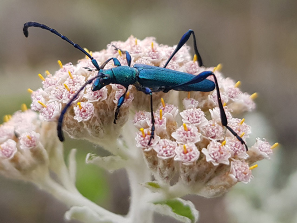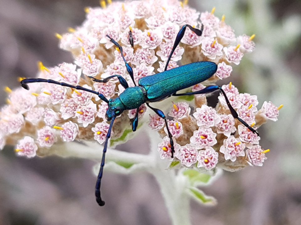 Antennae 11 segmented (M+F), slender but becoming broader from the seventh segment (8 - 11 flattened and wider) segment 10 shorter than segment 11.