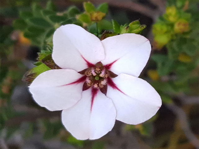 The flowers are usually solitary and reddish on the reverse; the 5 stamens are each tipped with a conspicuous gland.