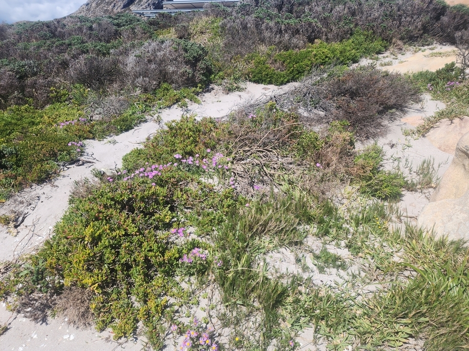 This species is found on sandy flats from the southern parts of Namibia and the Northern and Western Cape Provinces of South Africa, towards the Agulhas Plain. In both these provinces it grows both along the coast and further inland amongst, or as part of, seashore vegetation, fynbos (renosterveld and strandveld) and succulent karoo.