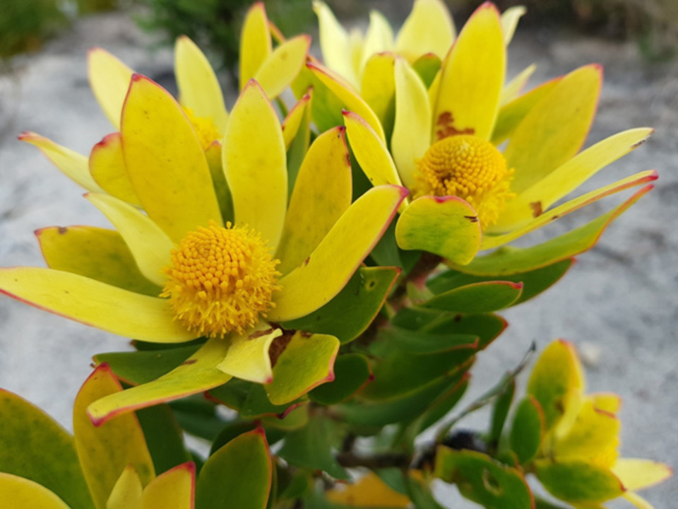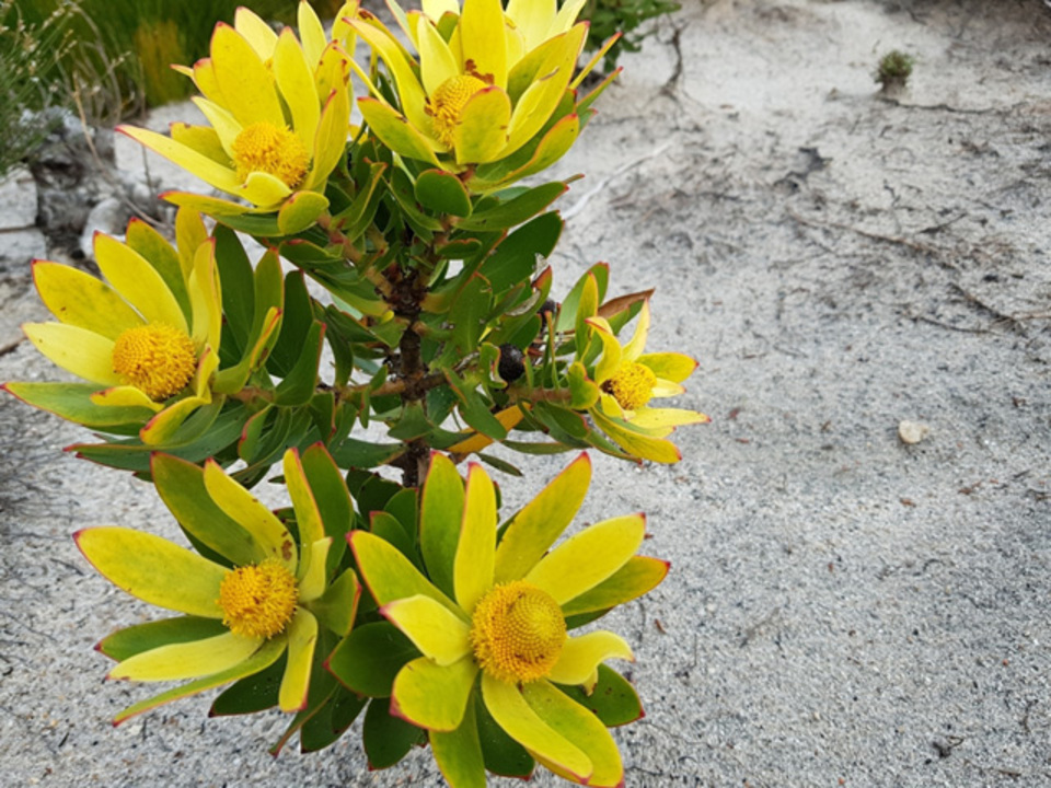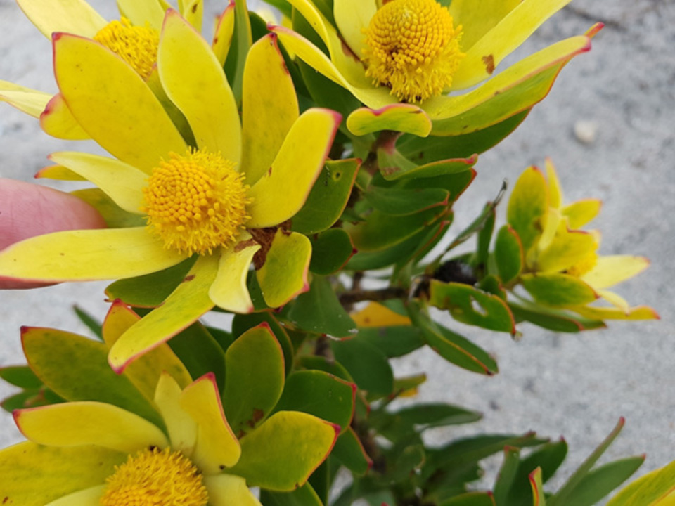 Common Names: Broad-leaved Conebush, Berggeelbos, Cloudbank Ginny