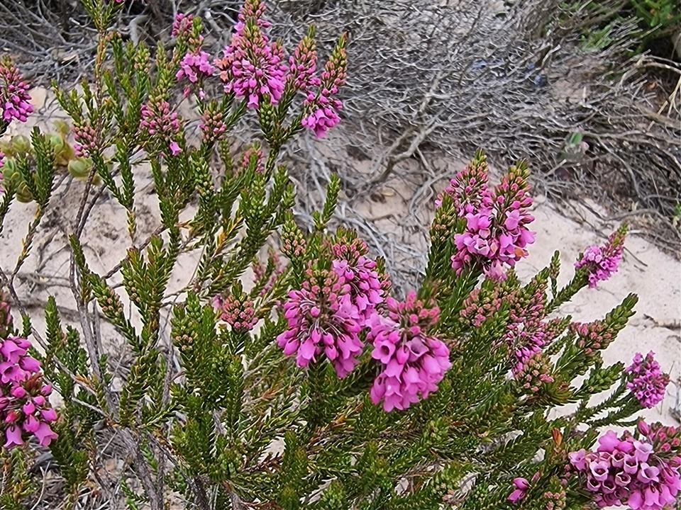 Small erect shrub up to 60cm. Leaves are 3-nate, erect, relatively short; flowers small, urn-to-cup-shaped (sometimes narrowly so), in spikes, pink to dark red; pedicel (flower stalk), has short, reversed hairs.