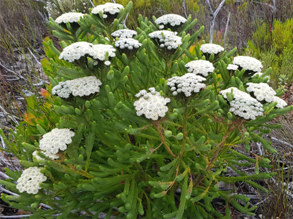 would be Berzelia albiflora, also called coffee-scented bush, even though it is