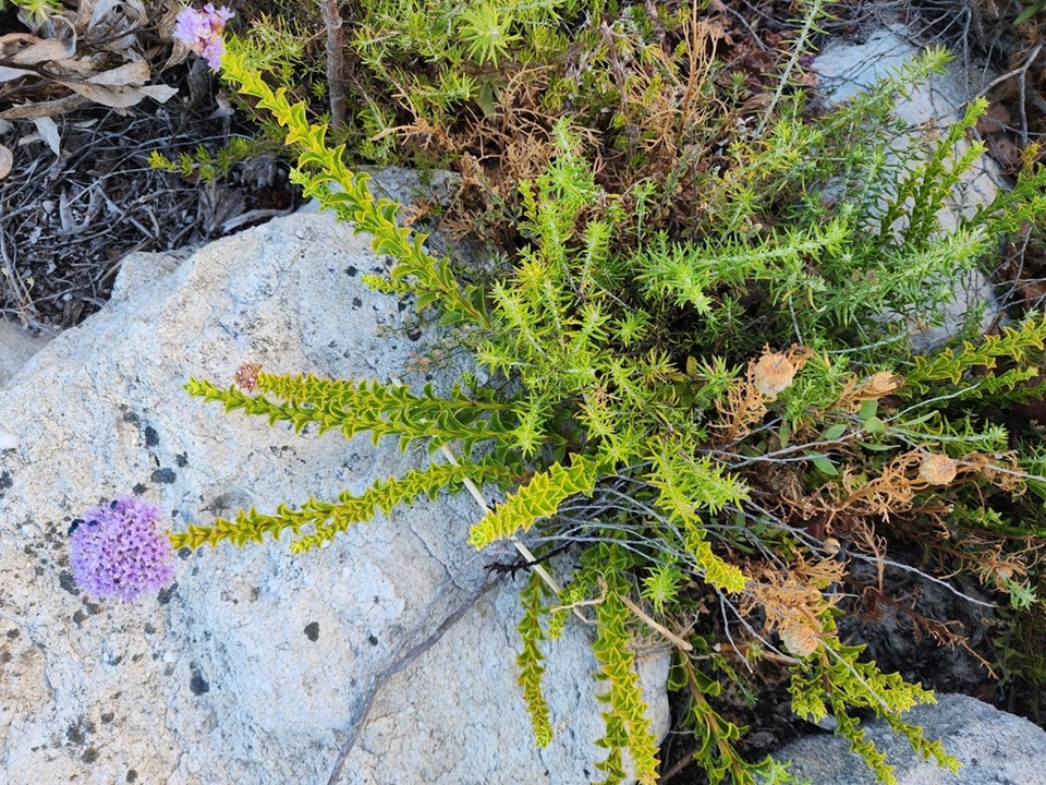 The Saw-tooth powderpuff or false selago is a like a fynbos padstal for insects. It has magnificent mauve blooms that attract butterflies and a host of other insects. The flowers are constantly buzzing with life. Pseudoselago serrata have been observed in the Reserve, Red River Valley and both sides of the Rockjumper (smallholding) Road.