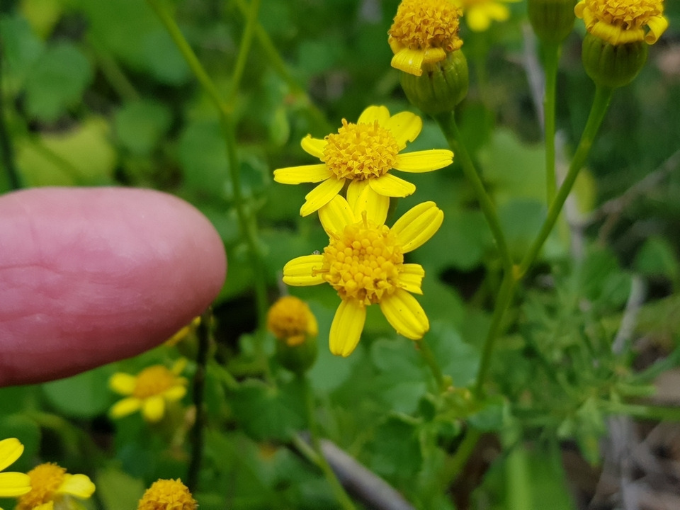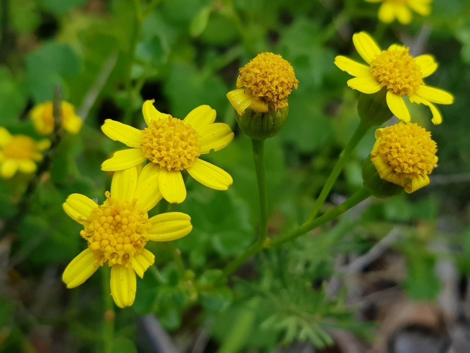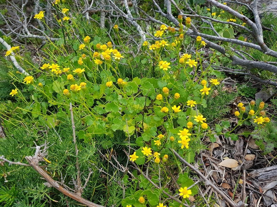 Cineraria geifolia (Sea Cineraria) is a fast-growing, sprawling perennial ground cover native to the Western Cape, South Africa. It produces bright yellow, daisy-like flowers in loose clusters from winter to spring. This hardy, 60 cm tall plant thrives in full sun or light shade, preferring sandy or loam soils.