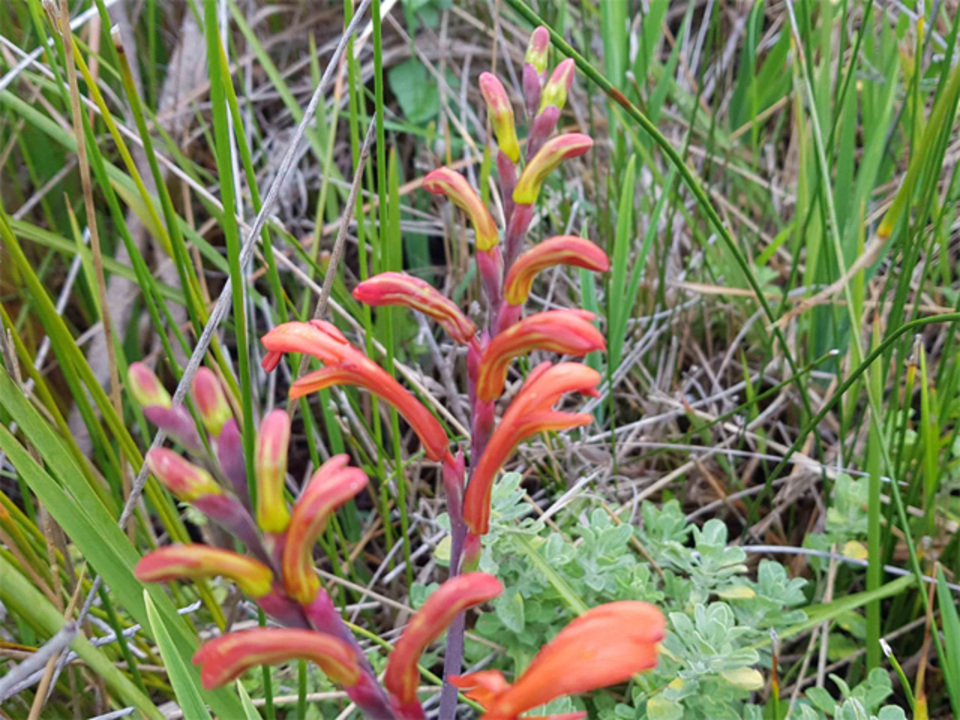 2021-06-10 | Chasmanthe aethiopica | Cobra Lily | Iridaceae | 7701RG | Orange | Autumn,Winter | E, K, N, S, V, | View |