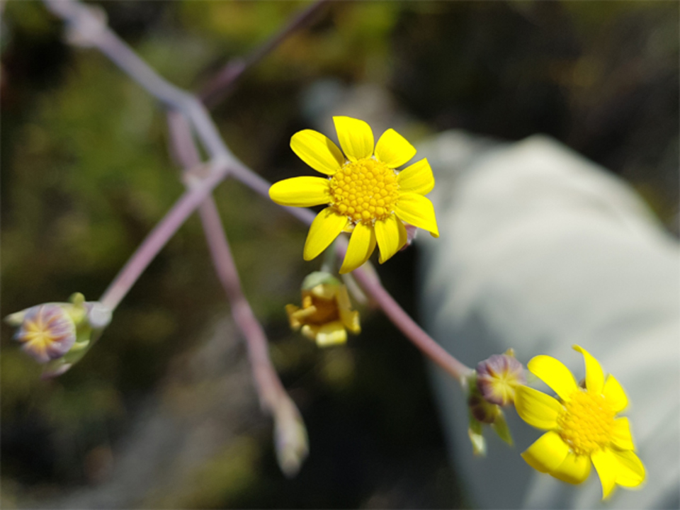 2021-03-10 | Othonna quinquedentata | Fivetooth Babooncabbage, heavenly daisy; bobbejaankool (Afr.). | Asteraceae (Daisy Family) | Shrubs | 3384RGu | Yellow | Spring,Summer | N, S, | View |