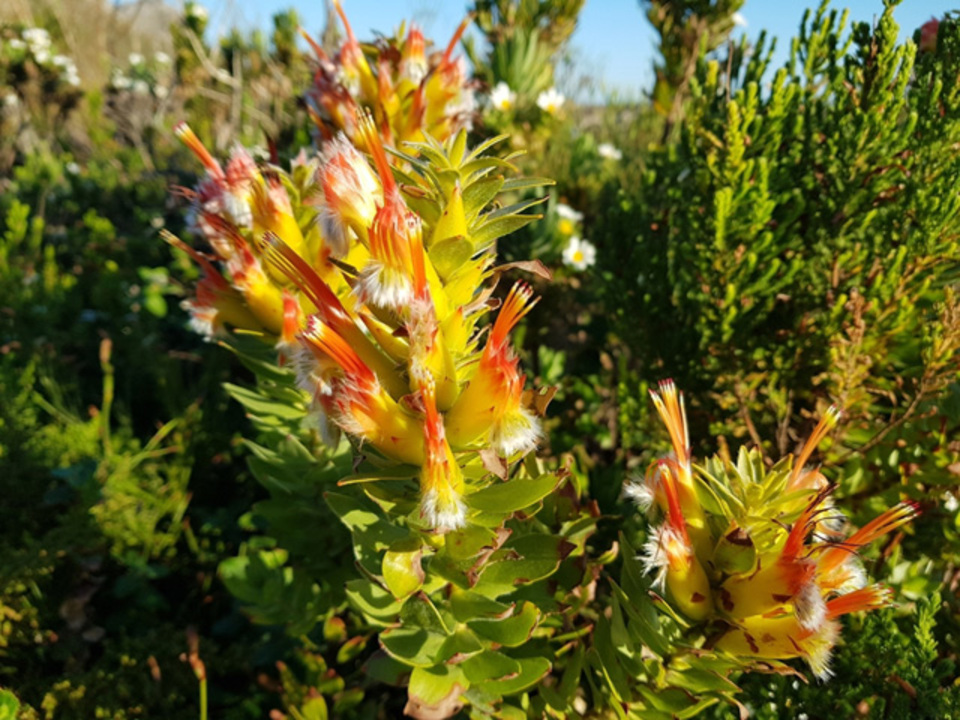 2021-08-18 | Mimetes hirtus | Marsh Pagoda-Bush | Proteaceae | Bushes | 4421RG | Orange | Spring,Summer | S, | View |